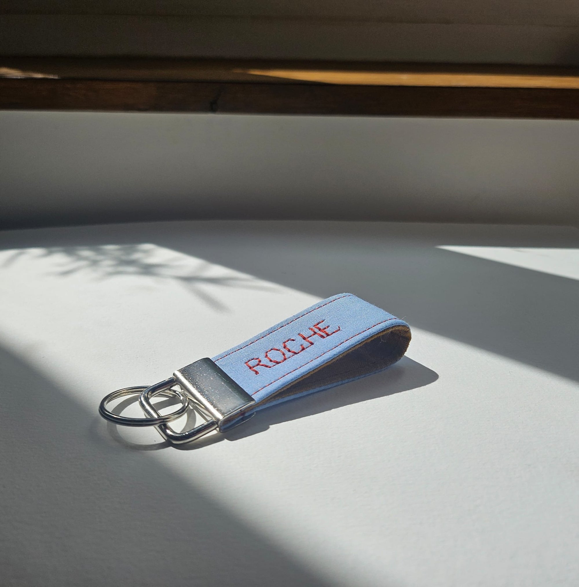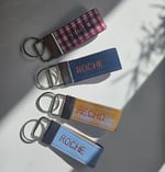 Small personalised key ring / bag charm with 1 embroidered name / word