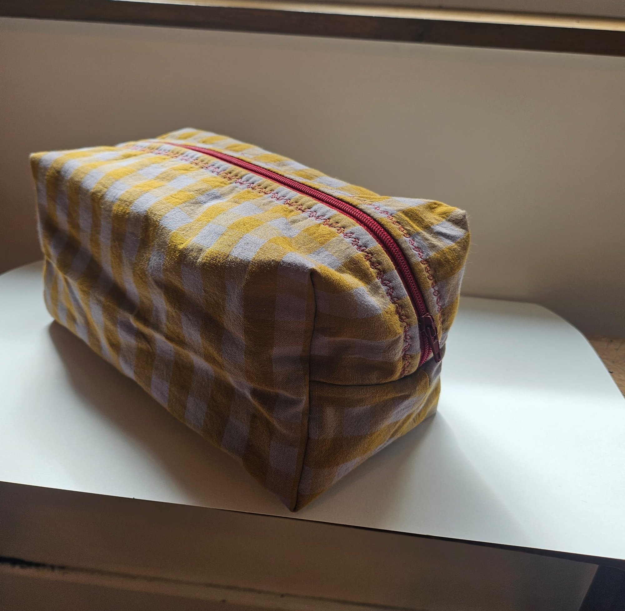 Toiletry bag, pouch or sewing kit, makeup or supply bag made from Oeko-Tex-certified Vichy fabric